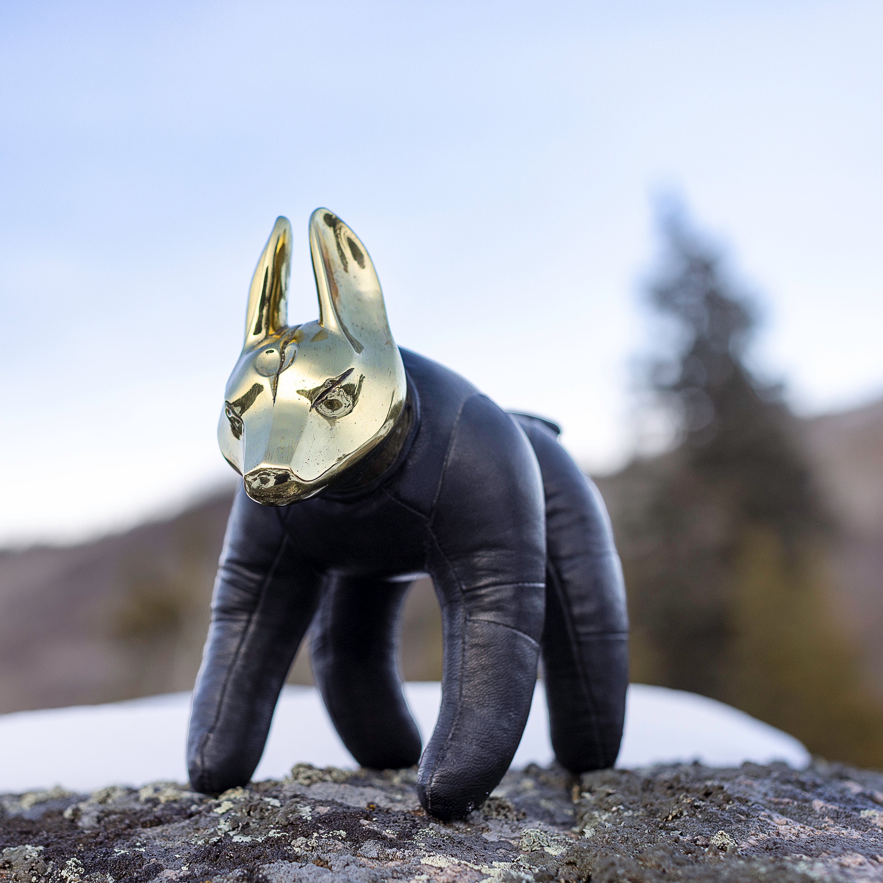 Idaho, the wolfdog, is a new addition to the BLAMO family. His face was hand sculpted in wax by Spencer Hansen, and then brass cast. His body is made of leather. Idaho is designed after our real life furry friend and Bali Mascot.